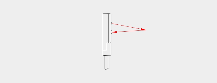 GN-045機(jī)身是21.2*12.7毫米的大小,有兩個指示燈,分別是電源指示燈紅色,上電就亮,還有一個輸出指示燈綠色。產(chǎn)品有兩個光孔,一個發(fā)射,一個接收,另有直徑2.2毫米的螺絲安裝孔,以固定位置。
