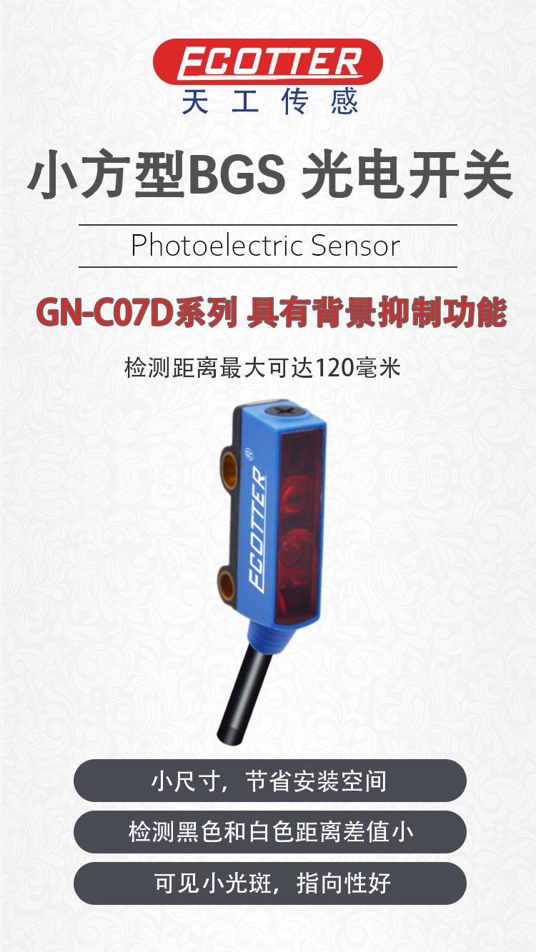 ECOTTER 小方型光電開關(guān)GN-C07系列是具有背景抑制功能的光電開關(guān)中尺寸最小的款式,它秉承光電開關(guān)的優(yōu)良特性檢測距離遠,檢測白色距離達到1~120毫米,檢測黑色距離5~110毫米,黑白差值小。產(chǎn)品機身厚度7.7毫米節(jié)省安裝空間,反應速度快,有效保證了應用中不會出現(xiàn)過多的反應延遲。上電時發(fā)出紅光,可清楚看到感應的位置,方便調(diào)整檢測范圍。