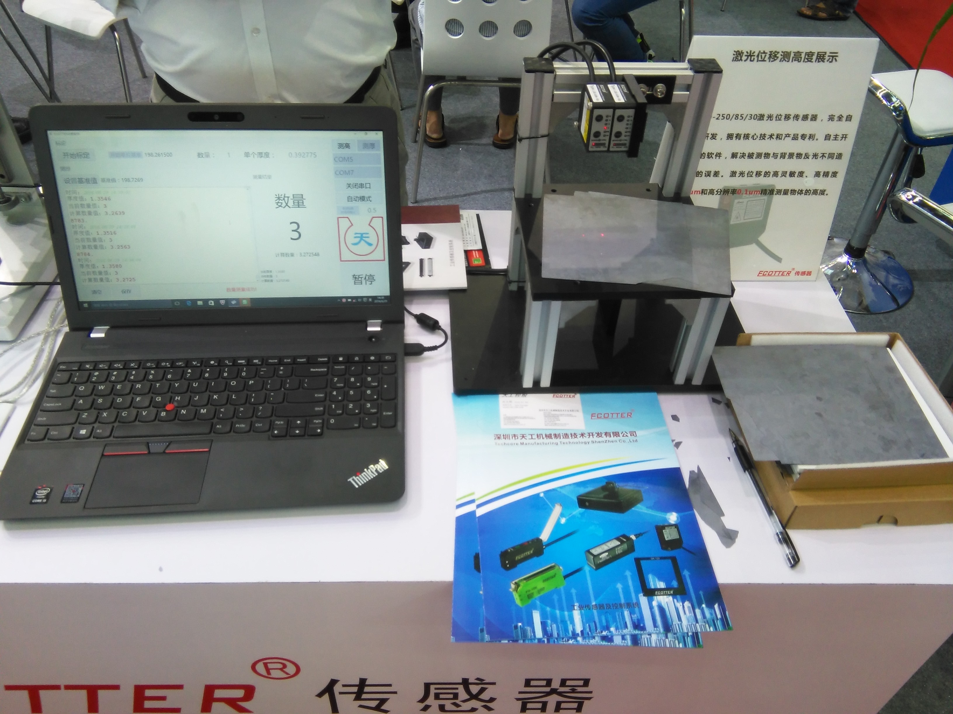 激光位移傳感器展示,分別制作了一套測(cè)厚裝置和測(cè)高裝置,讓客戶可以親自操作,實(shí)時(shí)了解產(chǎn)品的相關(guān)性能。