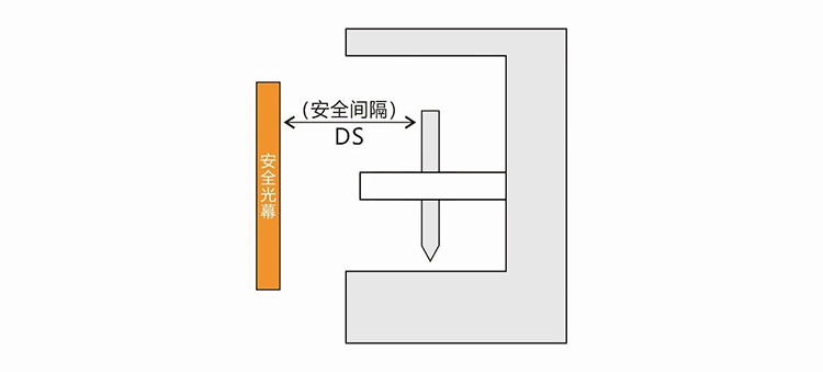 安全間隔:是指光幕至工作危險(xiǎn)區(qū)--模具刃口之間的最短間隔,即從手遮擋光幕的位置開始到達(dá)危險(xiǎn)邊界之前,能夠使滑塊停止所需要的間隔。安全間隔是確保安全光柵實(shí)現(xiàn)保護(hù)功能的必要條件之一,必須正確計(jì)算安全間隔!其計(jì)算方法應(yīng)根據(jù)壓力機(jī)制動(dòng)方式而定。安全間隔的距離應(yīng)當(dāng)按照J(rèn)B3350-93中第11.5條的規(guī)定計(jì)算: