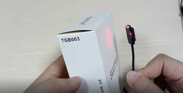 以GN-04NT-500為例,對(duì)射型的傳感器一端為發(fā)射端,一端為接收端,接收端接收到發(fā)射端的光,沒(méi)有輸出;當(dāng)由被測(cè)物擋住發(fā)射光,接收端沒(méi)有接收光時(shí),信號(hào)輸出。
