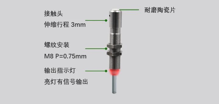 ECOTTER自主研發(fā)了接觸式傳感器S2-CS078和探桿式S2-CS089系列,常用于接觸檢測、原點(diǎn)定位等工業(yè)自動化場景,S2-CS078接觸面帶耐磨陶瓷片,產(chǎn)品使用更長久。